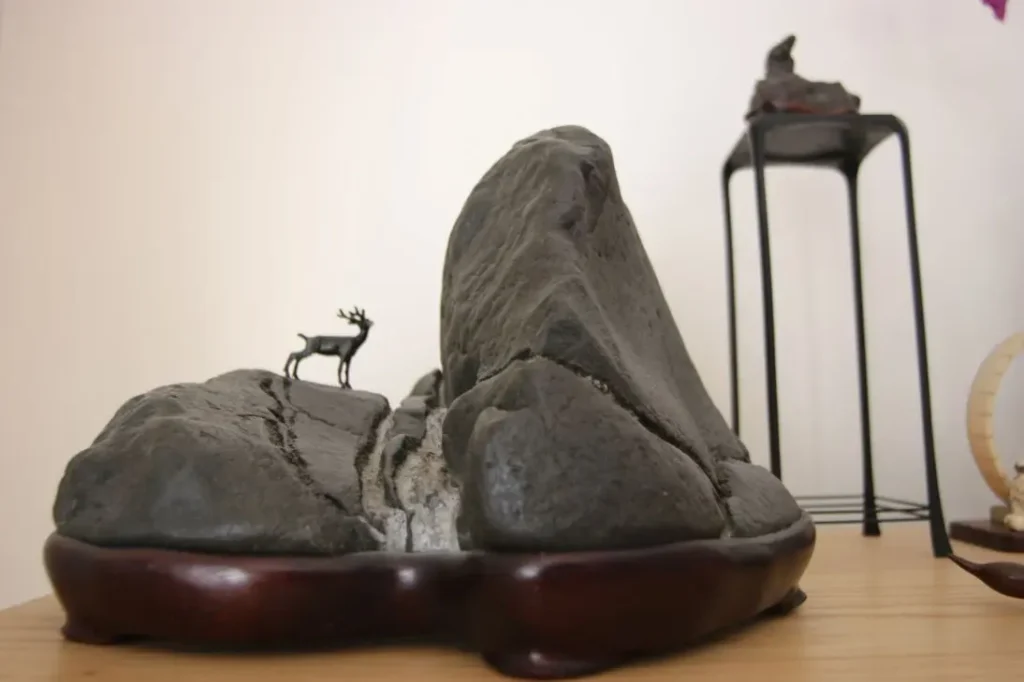 Nature’s own sculptures, shaped by time and the elements. These viewing stones capture entire landscapes in miniature – distant mountains, flowing rivers, and abstract forms that speak to the imagination and invite quiet contemplation.